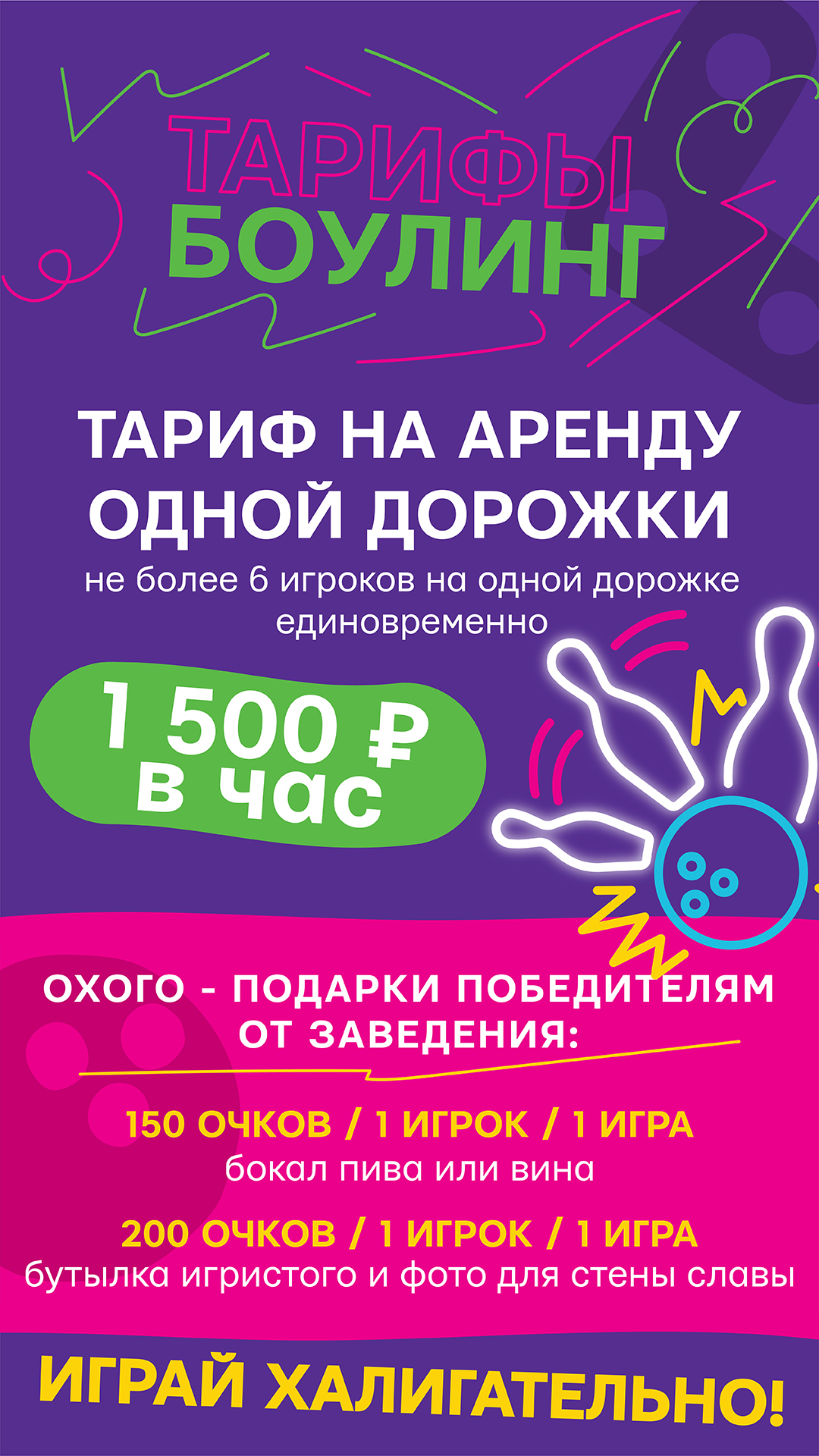 Дни рождения, тимбилдинги, турниры по боулингу, квесты, игротуры, выпускные.